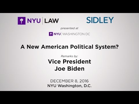 57:15 Vice President Joe Biden: A New American Political System? Vice President Joe Biden delivers remarks at the inaugural Sidley Austin Forum hosted by NYU School of Law at NYU Washington, DC.In the wake of the 2016 elections, the program will address the ev...