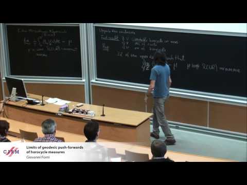 54:35 Giovanni Forni: Limits of geodesic push-forwards of horocycle measures Abstract: We prove a couple of general conditional convergence results on ergodic averages for horocycle and geodesic subgroups of any continuous SL(2,ℝ)- action on a locally compact space. These r...