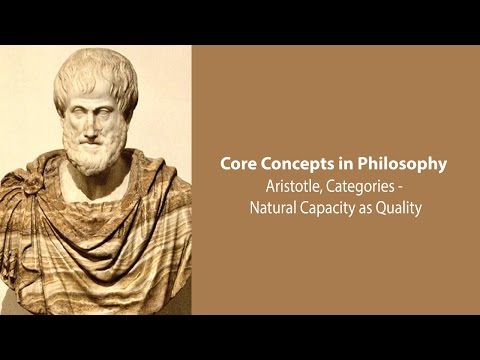 13:08 Aristotle on Natural Capacity as Quality (Categories, c.8) - Philosophy Core Concepts This video focuses on Aristotle's work, the Categories, and examines his discussion in chapter 8 of one particular class of qualities, namely "natural capacities"Gregory B. Sadler is the presiden...